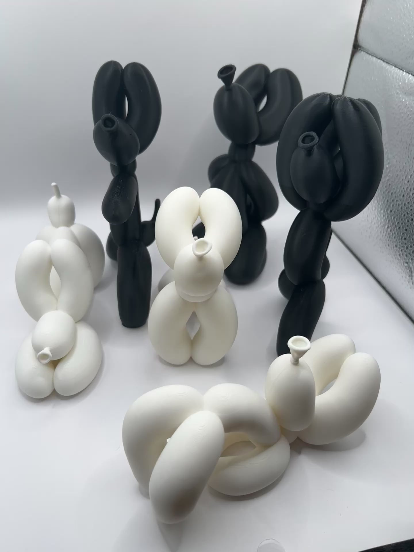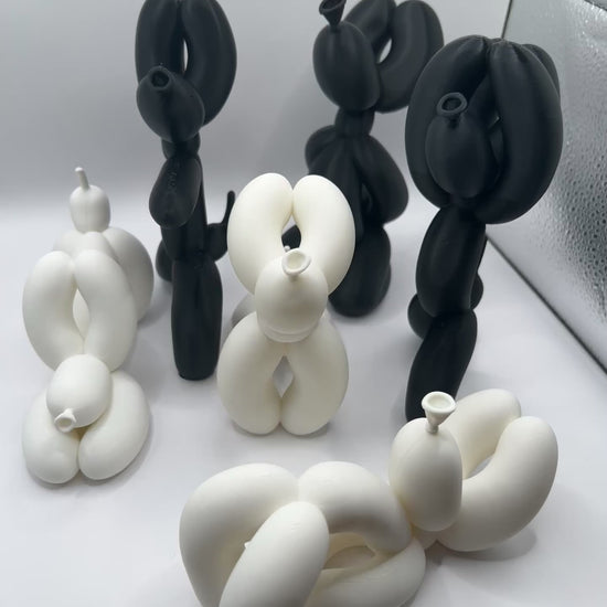 Bring a playful sense of calm to your space with our 6" Dog Balloon Yoga Statues – a whimsical twist on mindfulness. This 6-piece set includes three black and three white statues, each captured in a unique yoga pose. Designed to resemble balloon animals, these sculptural pups strike poses that inspire serenity with a smile.